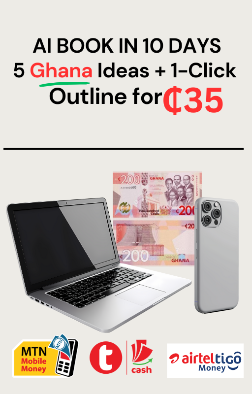 AI BOOK IN 10 DAYS 5 Ghana Ideas + 1-Click Outline for ₵35